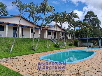 Área de 12.000 m² com excelente estrutura: 10 chalés todos alugados, casa principal, piscina, pomar e nascente própria.